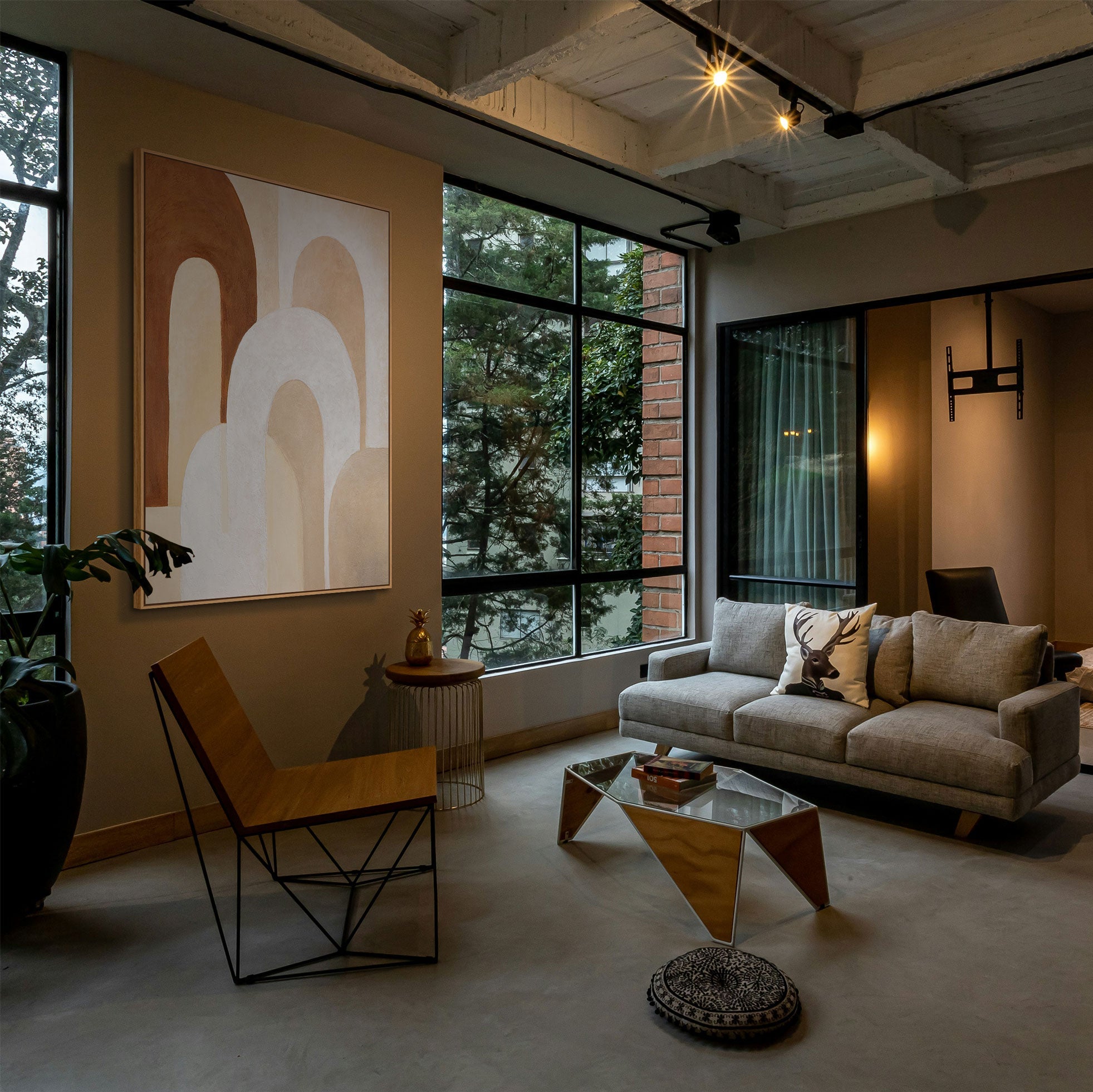 „Der Atem der Architektur“ ist eine Komposition, die Ruhe und Erhabenheit der Formen vermittelt. Rhythmische Bögen in Sand-, Creme- und Terrakottatönen vermitteln ein Gefühl von Bewegung und Licht. Das Bild vereint weiche Linien und eine kraftvolle Struktur – wie in der realen Architektur, wo jeder Bogen Leben in den Raum bringt.