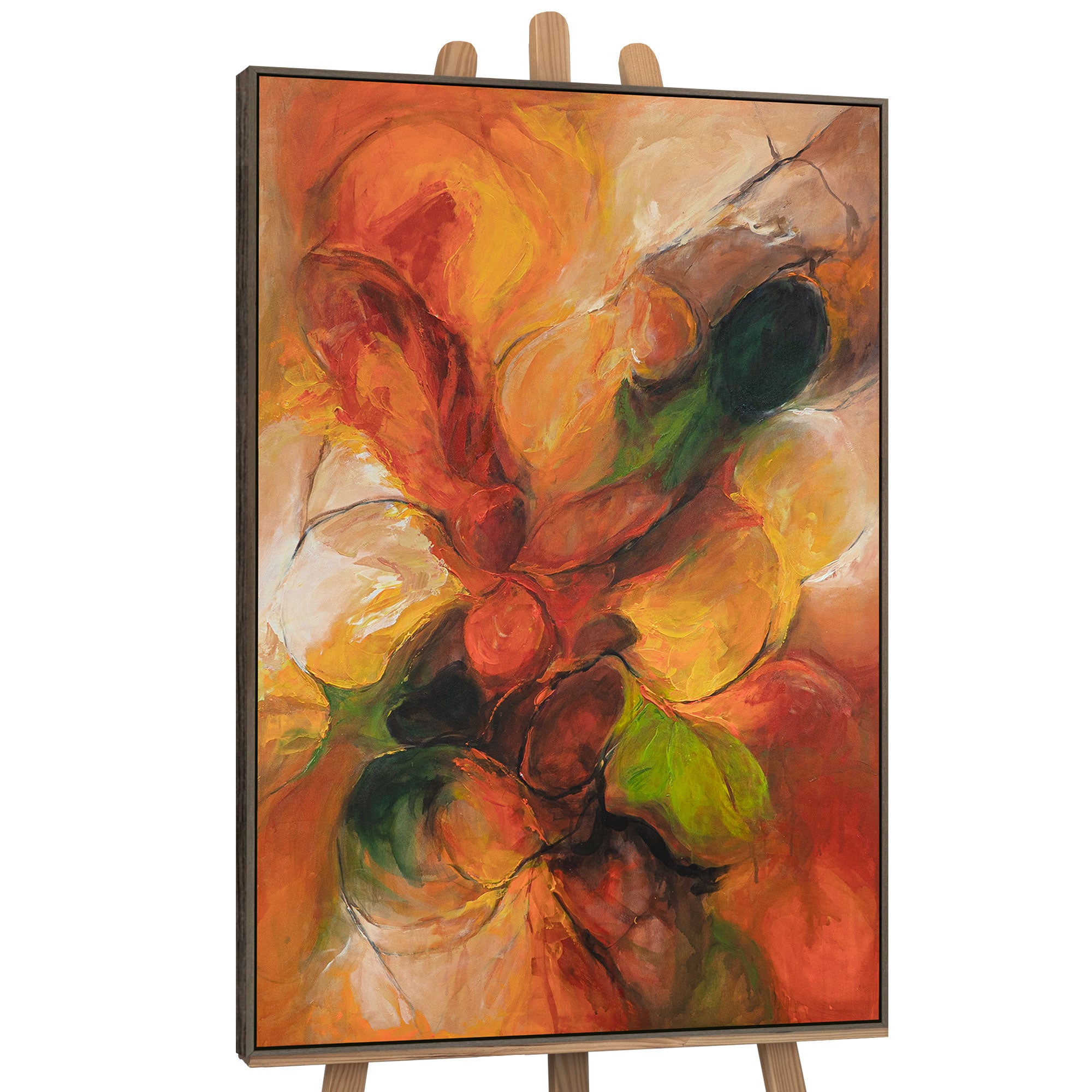 „Herbsttanz“ ist ein lebendiger Rhythmus von Farben, in dem Wärme, Licht und Bewegung verschmelzen. Feurige Rot-, Orange- und Gelbtöne erinnern an im Wind wirbelnde Blätter, während tiefe grüne Pinselstriche einen harmonischen Kontrast bilden. Das Bild beeindruckt durch seine Emotionalität und Dynamik, als würde die Leinwand selbst vom Herbstwind atmen.