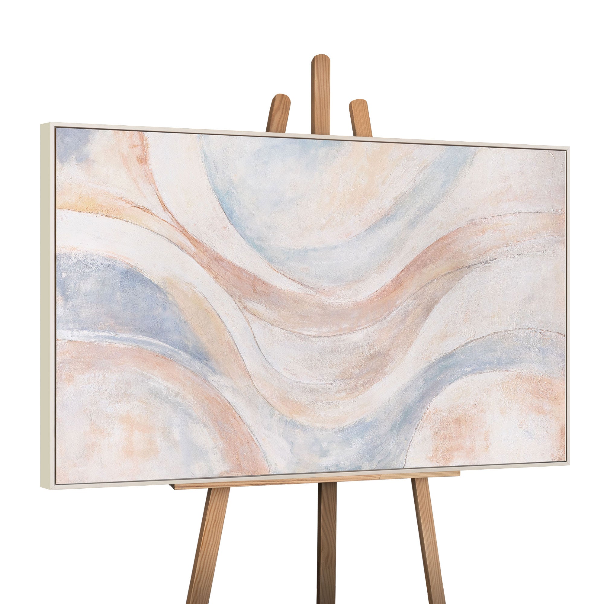 „Windlinien“ ist eine raffinierte abstrakte Komposition, in der sanfte Wellen und fließende Linien ineinander übergehen und den Eindruck einer luftigen Bewegung erwecken. Die Pastellfarben – Beige, Sand, Creme, Hellblau – erinnern an eine leichte Brise, die über den Sand tanzt oder durch die frische Morgenluft weht. Dank der strukturierten Oberfläche gewinnen die Farben an Tiefe und Weichheit und bilden eine zarte Dynamik in jeder Kurve.
