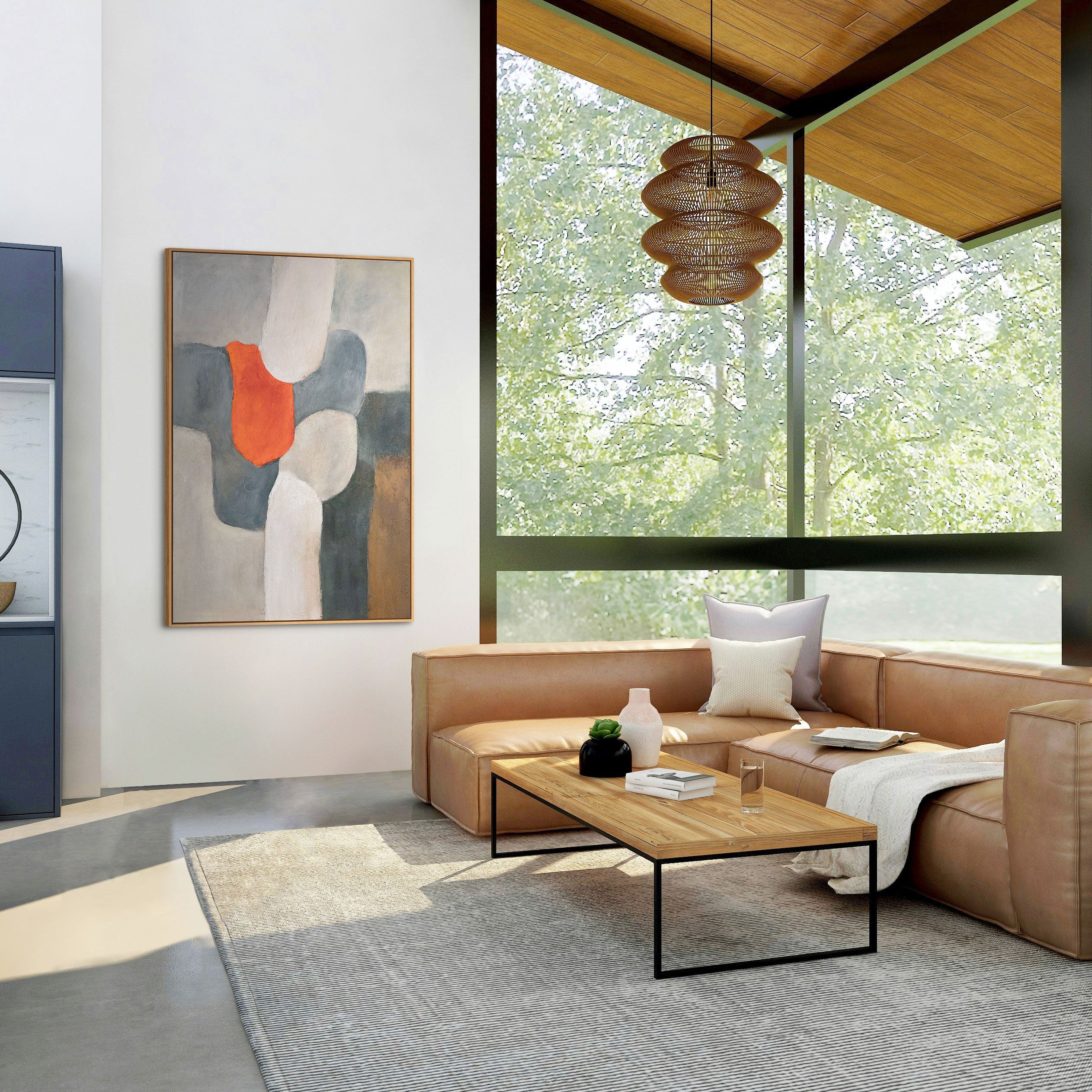 Dieses Gemälde erfüllt den Innenraum mit emotionaler Wärme und moderner Ästhetik. Es harmoniert perfekt mit Holz, Metall oder Stein und verleiht dem Raum Charakter und ein Gleichgewicht zwischen Zurückhaltung und Energie.