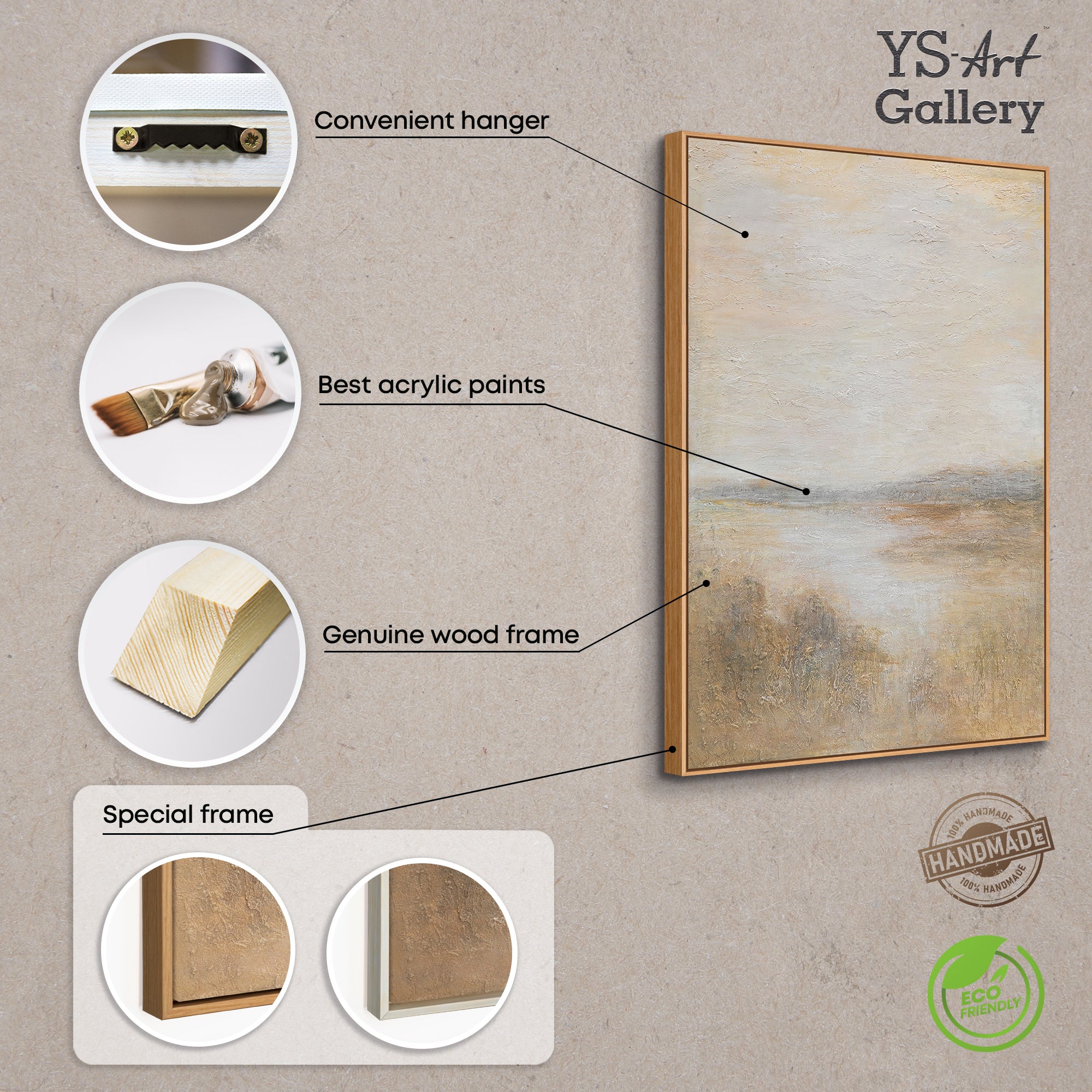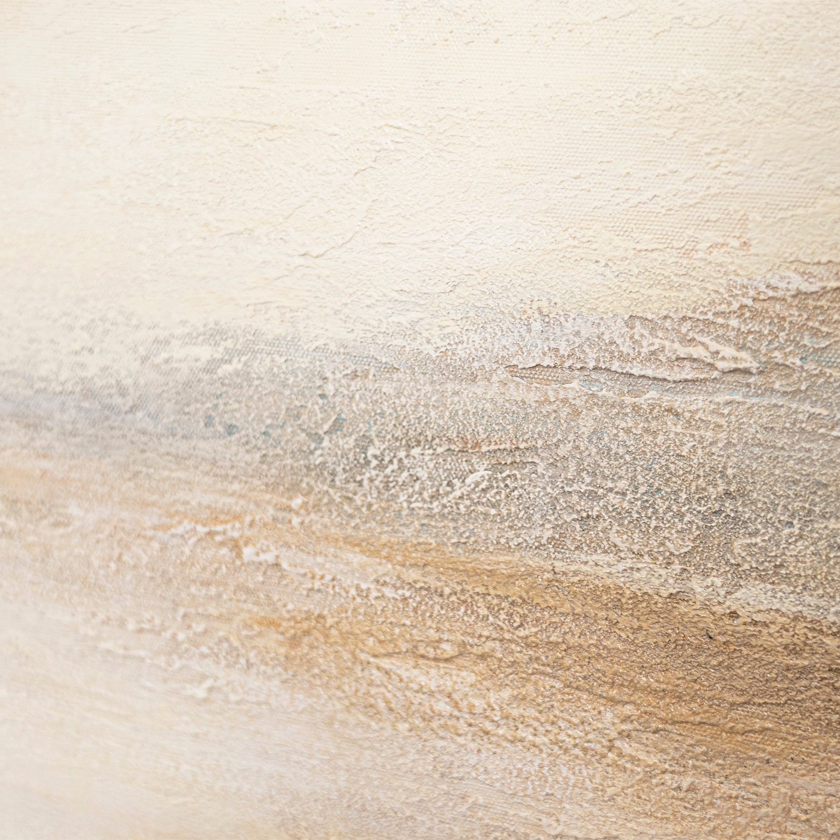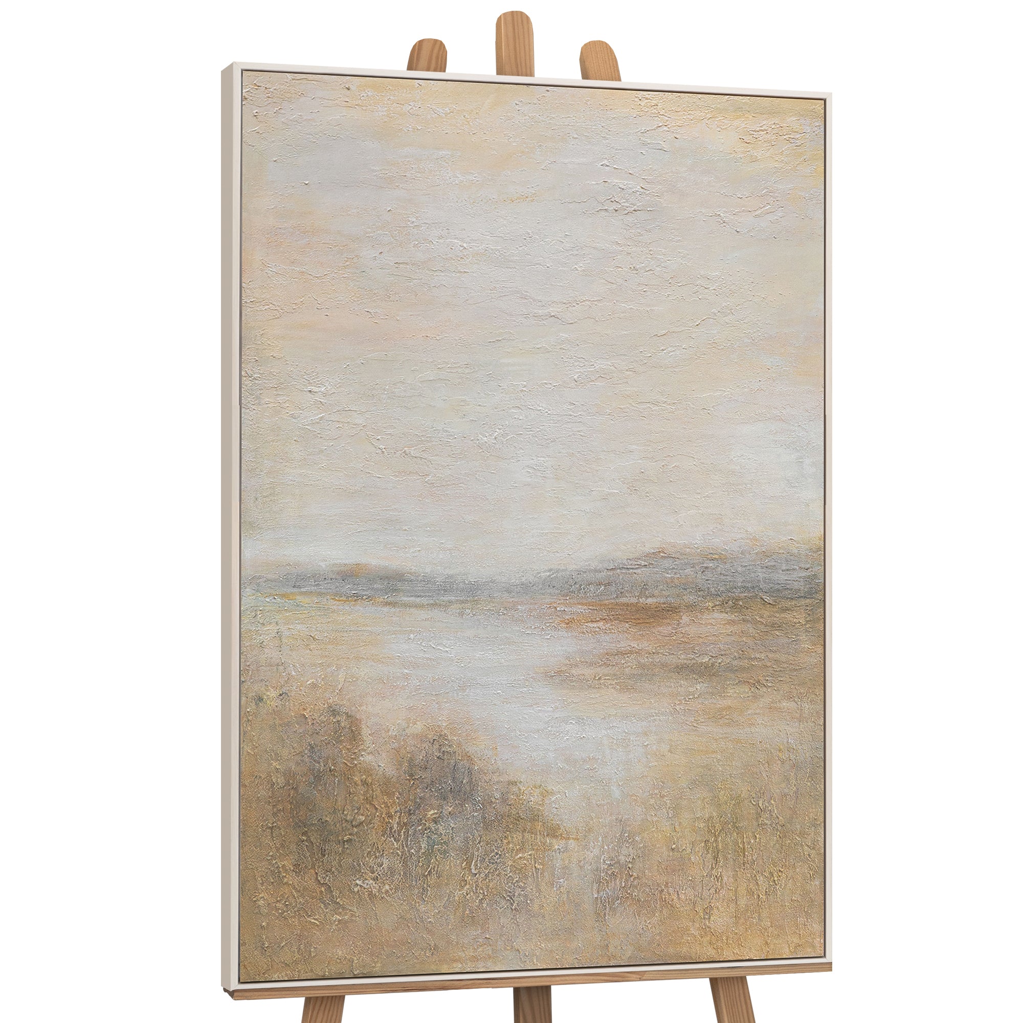 „Nebliger Morgen“ vermittelt das Gefühl der Stille, wenn die Welt gerade erst erwacht. Warme Beigetöne, sanfte grau-goldene Übergänge und eine zarte Textur schaffen auf der Leinwand eine Atmosphäre der Ruhe und des Auflösens in der Luft. Das Bild scheint von sanftem Licht erfüllt zu sein, das durch den Morgennebel gestreut wird.